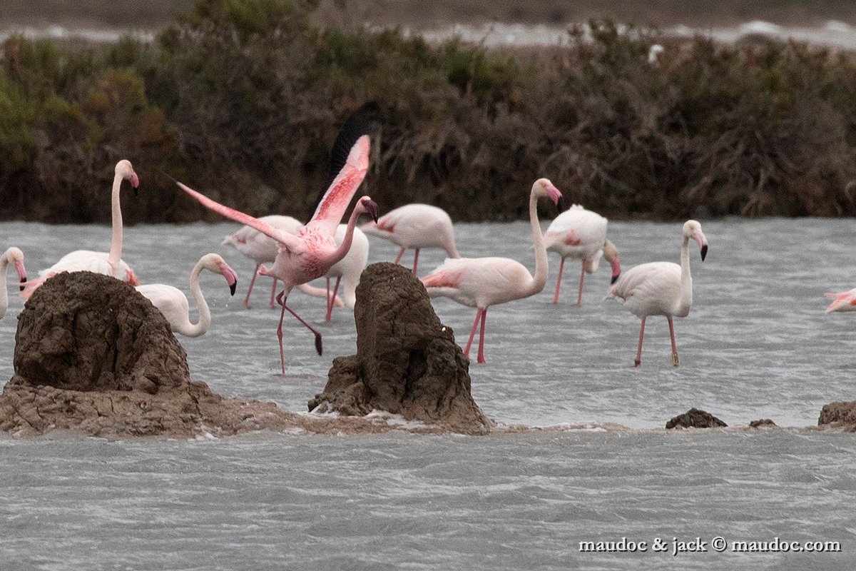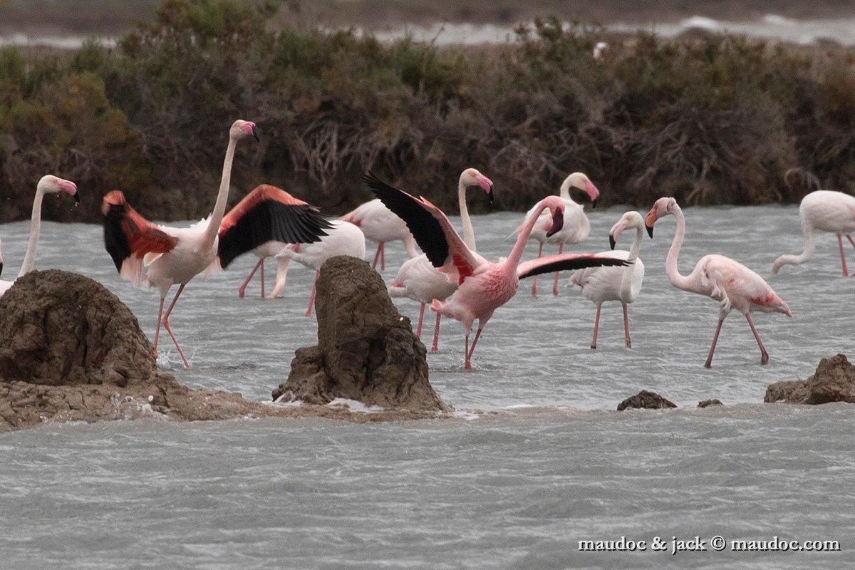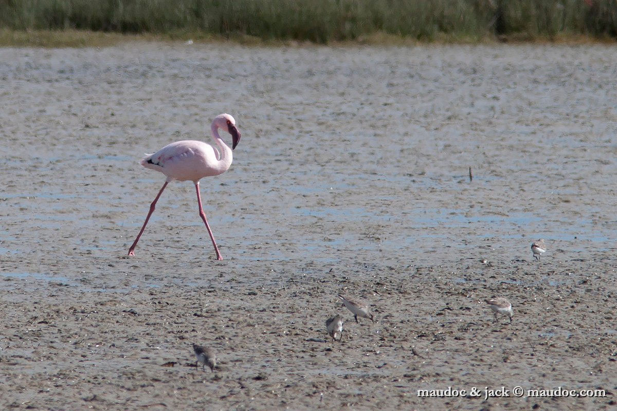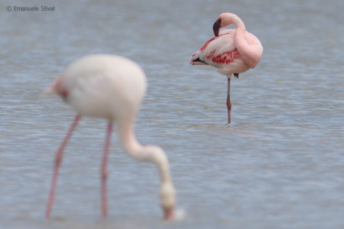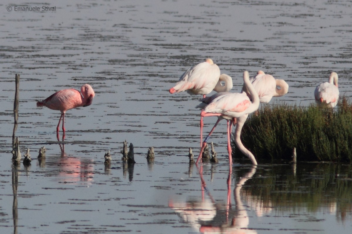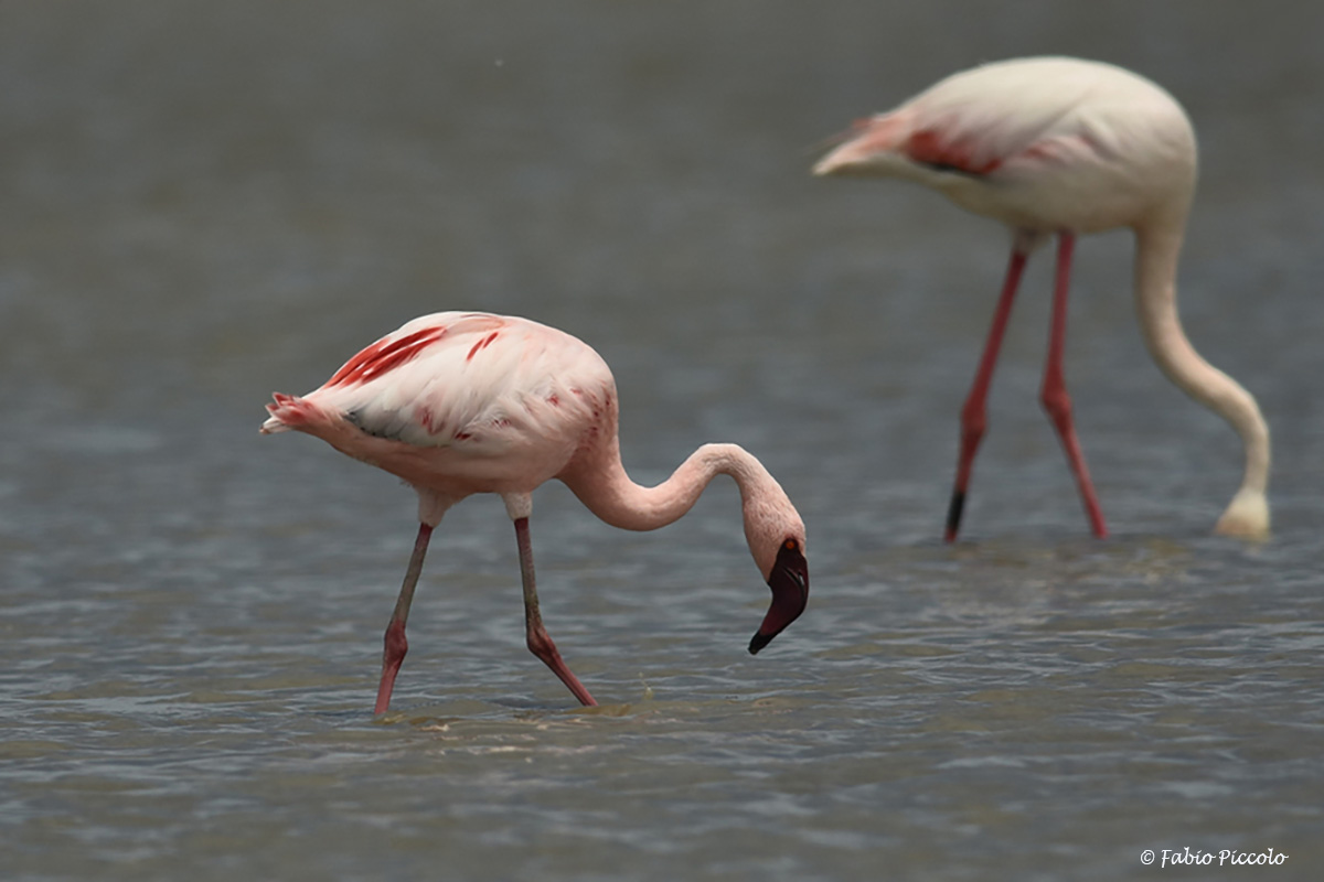 fenicottero minore (a ds) con fenicottero, aprile