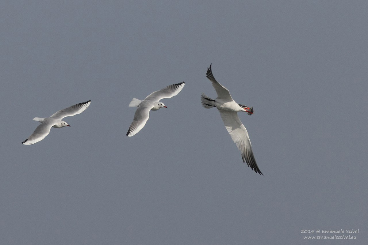 sterne maggiori con beccacce di mare e gabbiano comune, ottobre