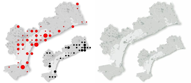 (2007-2012); in bianco e nero la distribuzione pregressa di