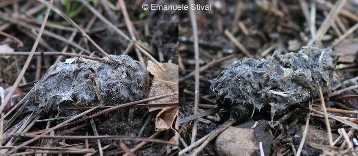 | Due borre di gufo comune; su quella a destra sono visibili anche alcune