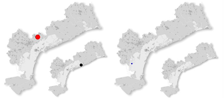 (2007-2012); in bianco e nero la distribuzione pregressa di